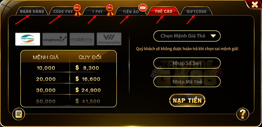 Nạp tiền qua thẻ cào