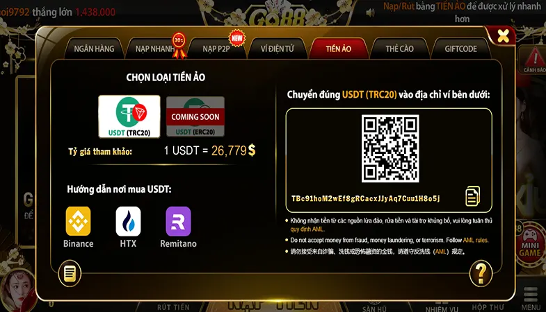 Hướng dẫn nạp tiền nhanh tại cổng game bài đổi thưởng Go88